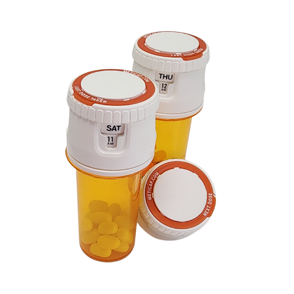 NOTE: Meticap is only designed to work on the 1-Clic® standard sized cap & vial found at pharmacies such as Walgreens and other retailers and online prescription companies. Meticap does not work on push-and-turn style of presription vials.